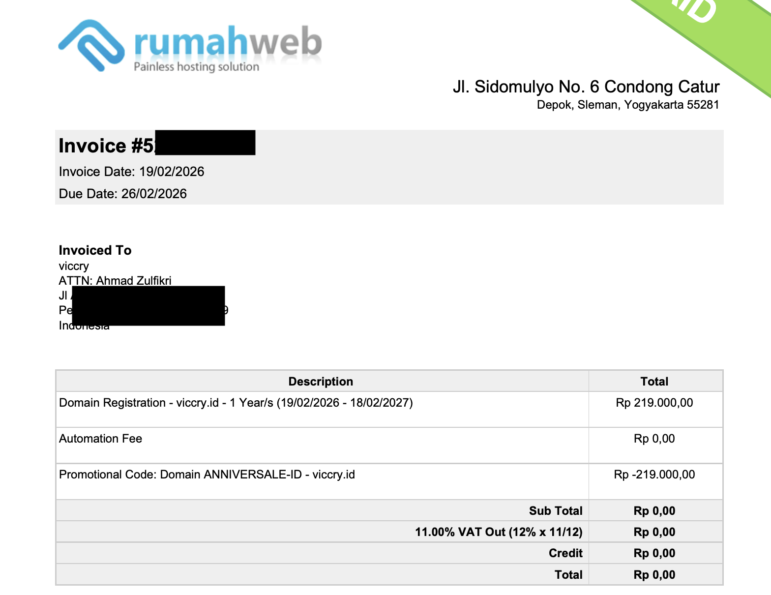Terima kasih yang sebesar-besarnya untuk Rumahweb atas kado ulang tahunnya yang sangat berkesan ini! Untuk kalian yang belum punya website, jangan ragu untuk sering-sering mengecek promo mereka. Siapa tahu, keberuntungan yang sama juga menanti kalian di masa depan.