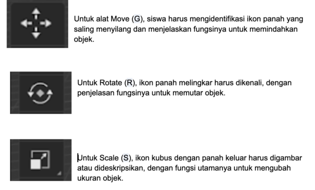 • Materi: Fungsi dan penggunaan shortcut Move, Rotate, dan Scale.